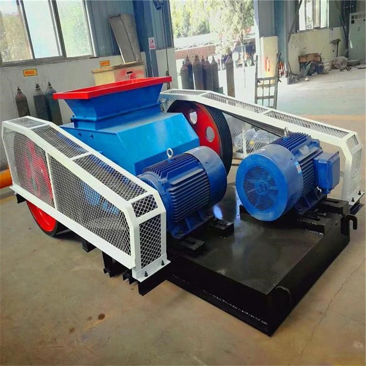 對(雙)輥破碎機是利用兩個高強度耐磨合金破碎輥,相對旋轉(zhuǎn)產(chǎn)生的高擠壓力來破碎物料,物料進入兩輥間隙(V 型破碎腔)以后,受到兩破碎輥相對旋轉(zhuǎn)的擠壓力和剪切力作用,在擠軋、剪切和嚙磨下,將物料破碎成需要的粒度從排料口排出。
