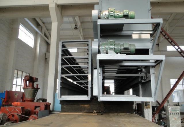 污泥烘干機,可以一次性將90%含水量的物料烘干至成品。針對污泥烘干過程中易結團結塊的特性,改變了一般單通道干燥機的料板結構形式,采用了組合式自清理裝置,擴展了單通道干燥機應用范圍,不僅可以干燥各類污泥,還可以干燥各種高粘度物料。在烘干機頭部1/4段,除安裝揚料板外,同時安裝強化蒸發(fā)的解聚機構和鏈接式篦條翼板,不但能夠傳導熱量,而且還能防止污泥粘堵筒體和揚料板,充分利用進料端干燥速率快的特點,實現(xiàn)層層脫掉的方法使其能迅速干燥。